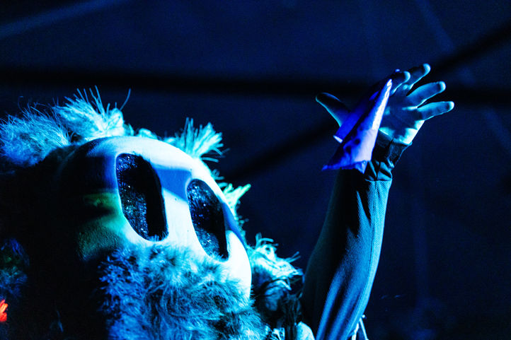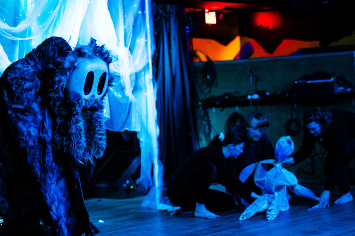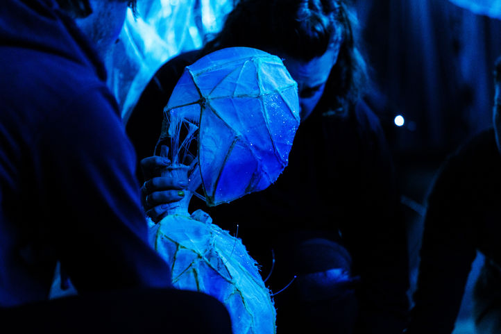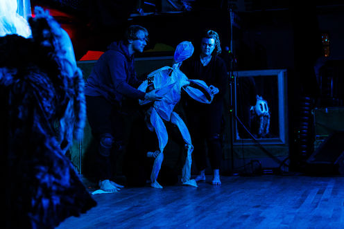 Blue Silk began as an artist residency at the University of Colorado Colorado Springs (UCCS). Cinco Palcensia envisioned a show featuring haunting puppetry and music to narrate the story of drug abuse. After recently losing his cousin to an overdose, Cinco created Blue Silk. Katy was brought on early in the residency as a puppet consultant, providing direction, education, and insight into the puppet elements of the storytelling.